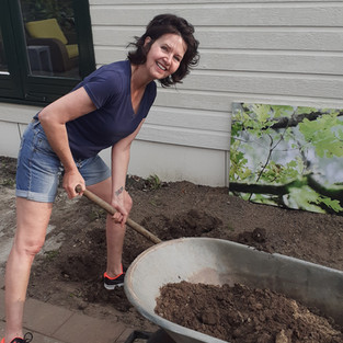 Het heeft even geduurd na de chemo maar gelukkig voel ik me weer veel beter, heb weer veel meer energie! Dus wordt er volop geklust, nu in de tuin bij ons hutje op de Veluwe. Echt een flinke klus. Gelukkig met de broodnodige hulp van Bob, Bart, zwager Arjan en maatje Arjan, en natuurlijk mijn meissie. Die staat te zagen met een afkortzaag of het niets is, vult kruiwagens en leegt ze weer (op een andere plek…) en loopt zelfs met bestrating te slepen…toppertje dus!